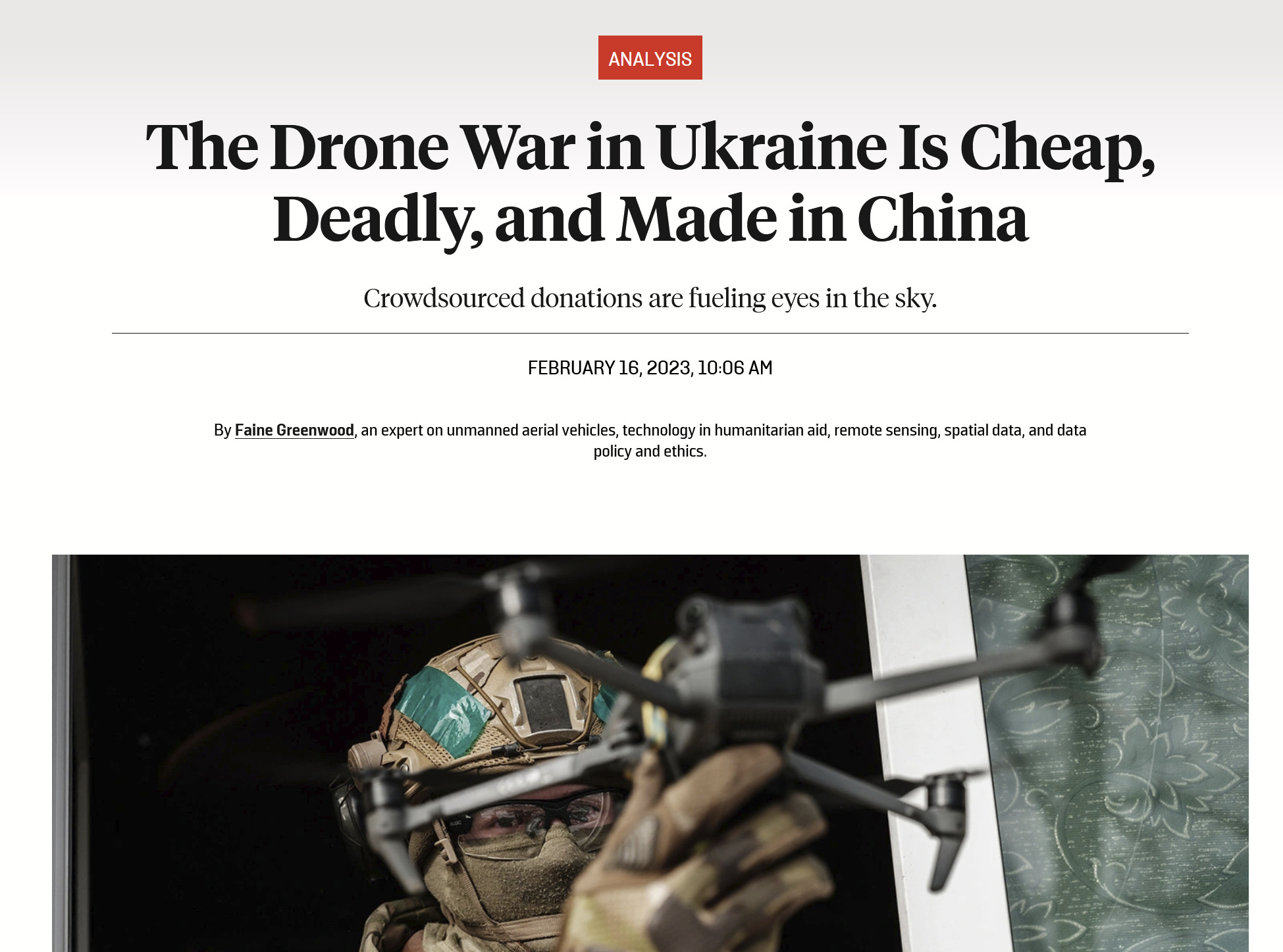 Here’s my recent Foreign Policy piece on drones in the Ukraine War. (Thanks again, James Palmer).