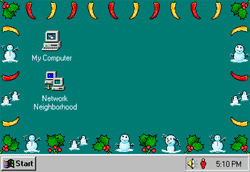 You use it to add an array of Christmas lights around the edge of your screen, which sounds simple enough. But there was depth to it. There were many different bulb varieties, from rainbow dreidels to tiny chili peppers. There was MIDI music. The lights can be rearranged, animated in sequences, and timed. There was even a Bulb Factory which allowed you to make your own customized bulbs, which I did, and they were also dinosaurs eating each other. It was phenomenally annoying for most sane adults. It was a sea of wonder for easily-entertained children.