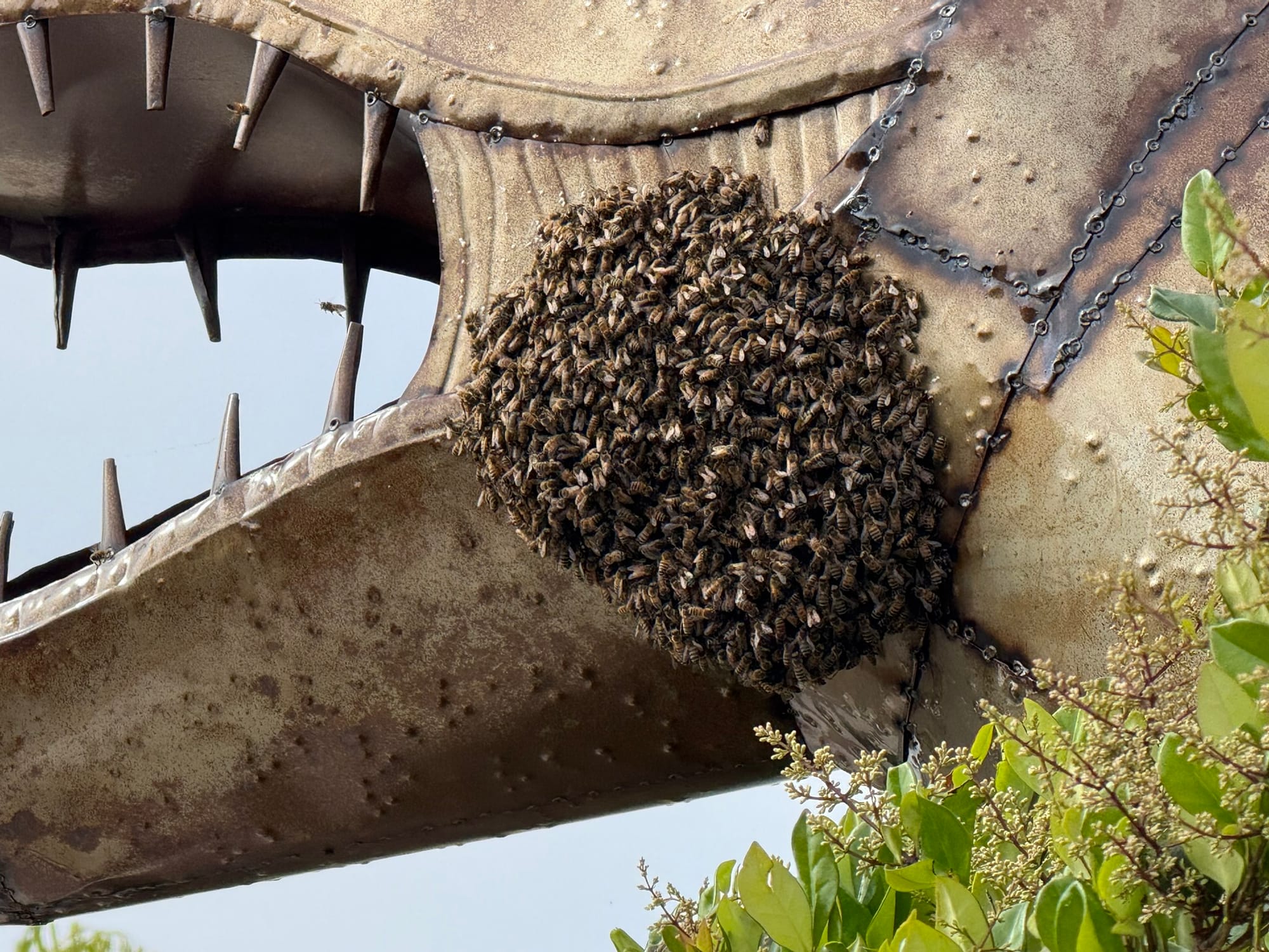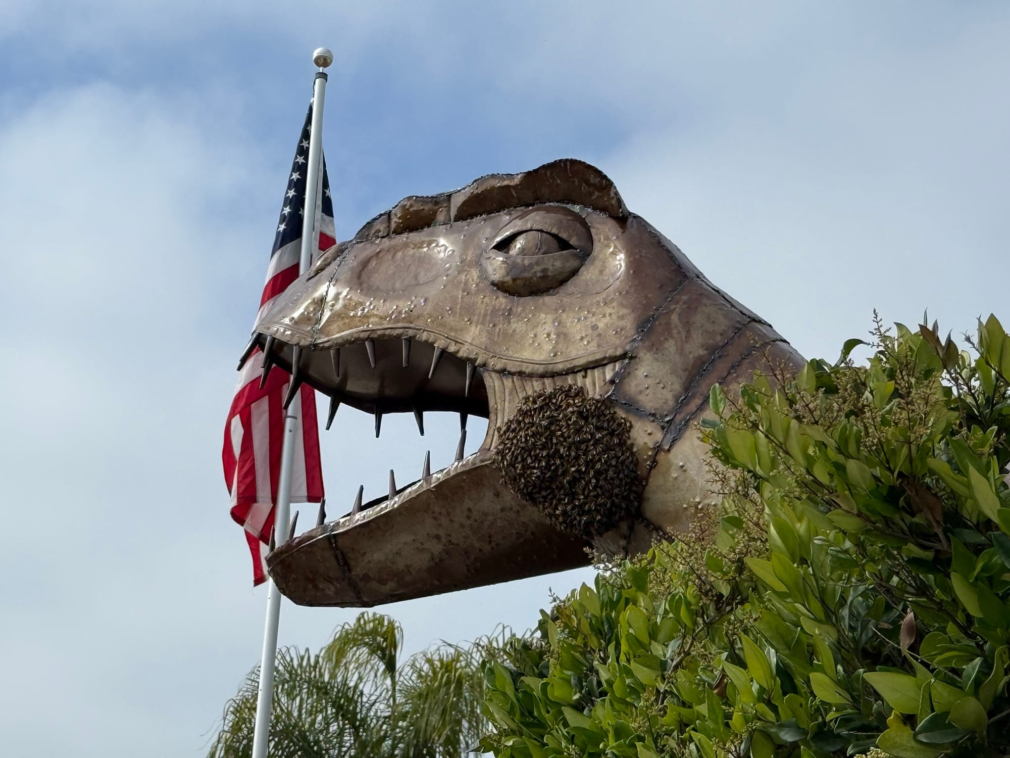 bees on a dinosaur in Dana Point - is this a metaphor for something?