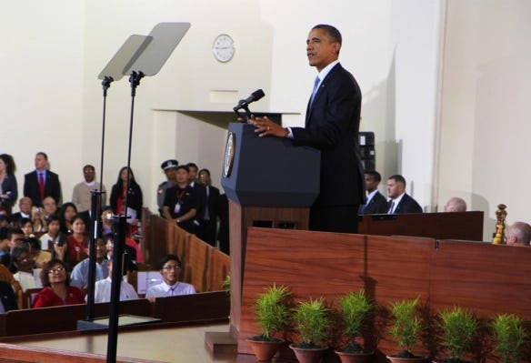 Obama explicitly mentioned the Rohingya situation while speaking at the University of Yangon, calling upon Myanmar to “stop incitement and to stop violence.” For his part, President Thein Sein - who’d said just a few short months ago that his country didn’t want the Rohingya, and that it’d be best if they were resettled in any country willing to take them - publicly agreed to eleven US-defined human rights commitments, from “taking decisive action in Rakhine” to permitting aid workers to enter certain conflict-wracked areas. Messy. Imperfect. But, from the perspective of the US, good enough for now.
