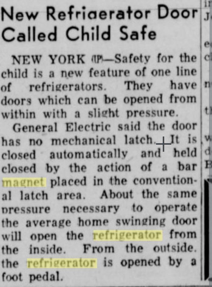 Fridge magnets have not always existed. In fact, they are probably newer than many people think they are. Just as the invention of the car required the prior invention of the internal combustion engine, so too did fridge magnets require two antecedent technologies: cheap (“permanent”) magnets that don’t lose their strength over time, and home refrigerators.