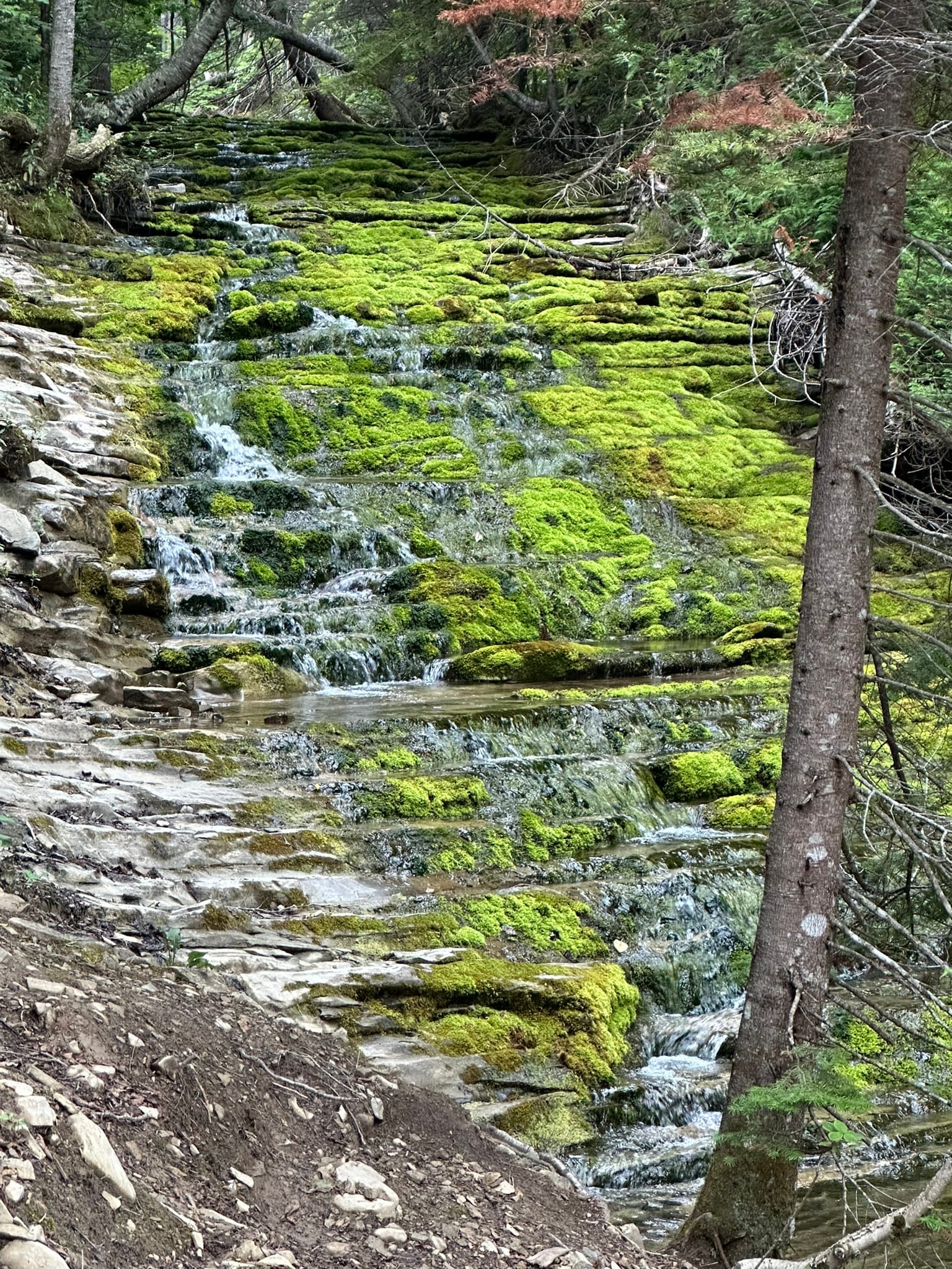 We also enjoyed the short but very steep La Chute trail, which takes you down wooden staircases into a lush and antediluvian- feeling gorge that's capped off with a waterfall. This place in particular really reminded me of the northern rainforests of the Pacific Northwest.