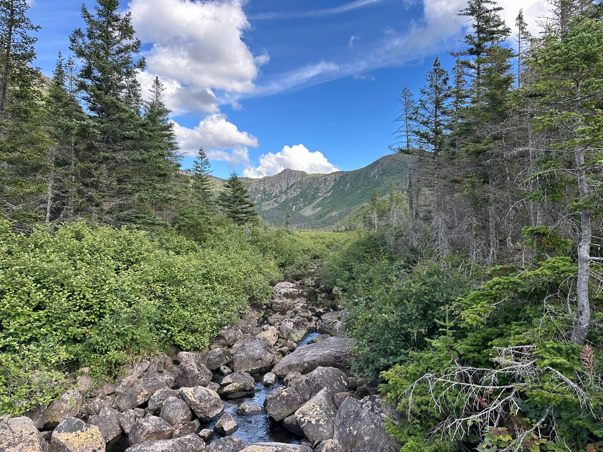 We spent our day on a series of short hikes, beginning with a relatively short climb up the Mount Ernest-Laforce Trail, which culminates at a platform offering genuinely majestic views over the enormous green mountains of the Chic-Choc range. We could see no signs of human civilization anywhere, and the silence and enormity of it all reminded me once again, pleasingly, of the sheer scale of the West.
