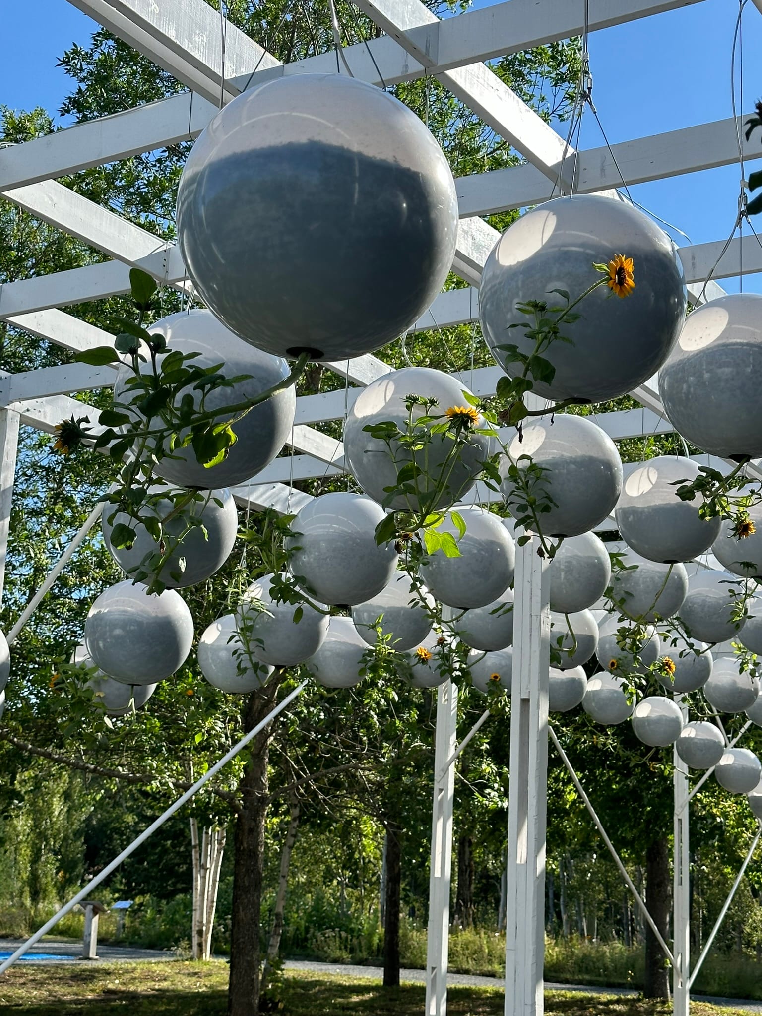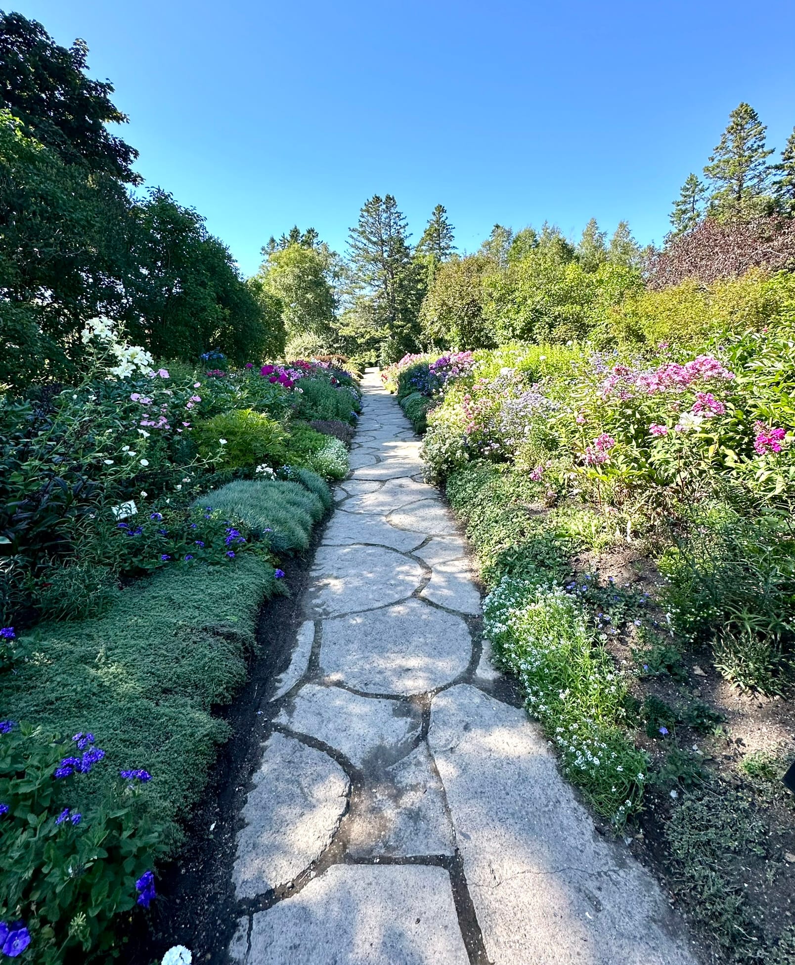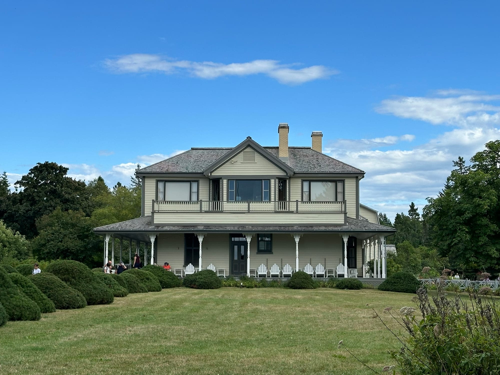 Our next stop was at Jardins de Métis, a large botanical garden and arts complex located by the sea near the town of Grand-Métis. Founded by the outdoors-minded Canadian aristocrat Elsie Reford in the early 1900s on her private estate, the gardens reverted to public ownership in the 1960s. Reford's old home has been turned into a museum with a focus on her life and art work by local women, and we were very interested in the exhibits on how she spent her days working for women's issues, fishing remote salmon rivers, and terrorizing important men. The gardens themselves feature a lot of interesting native and international plant species, some very cool contemporary art installations and exhibits revolving around futuristic interpretations of outdoor spaces. The on-site restaurant is also supposed to be very good, although we didn't get a chance to try it.