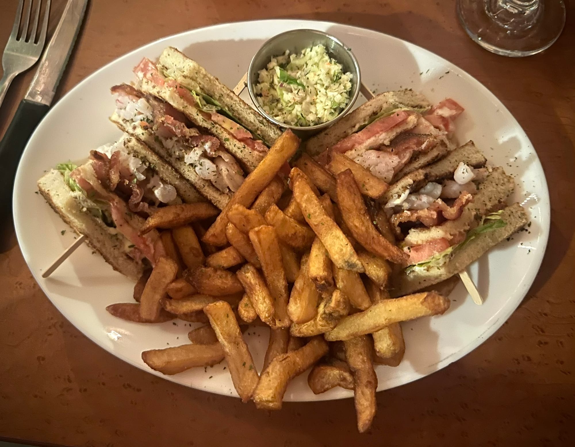 We both ordered enormous, delicious club sandwiches with lobster and shrimp in them, and while I'm not totally clear on why the people of the Gaspe Peninsula are such fiends for club sandwiches, I thank them for it.