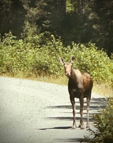 Anyway, this is why you drive really slowly with your brights on in this part of the world at night and early in the morning. So you don't catch a stray moose through the skull.