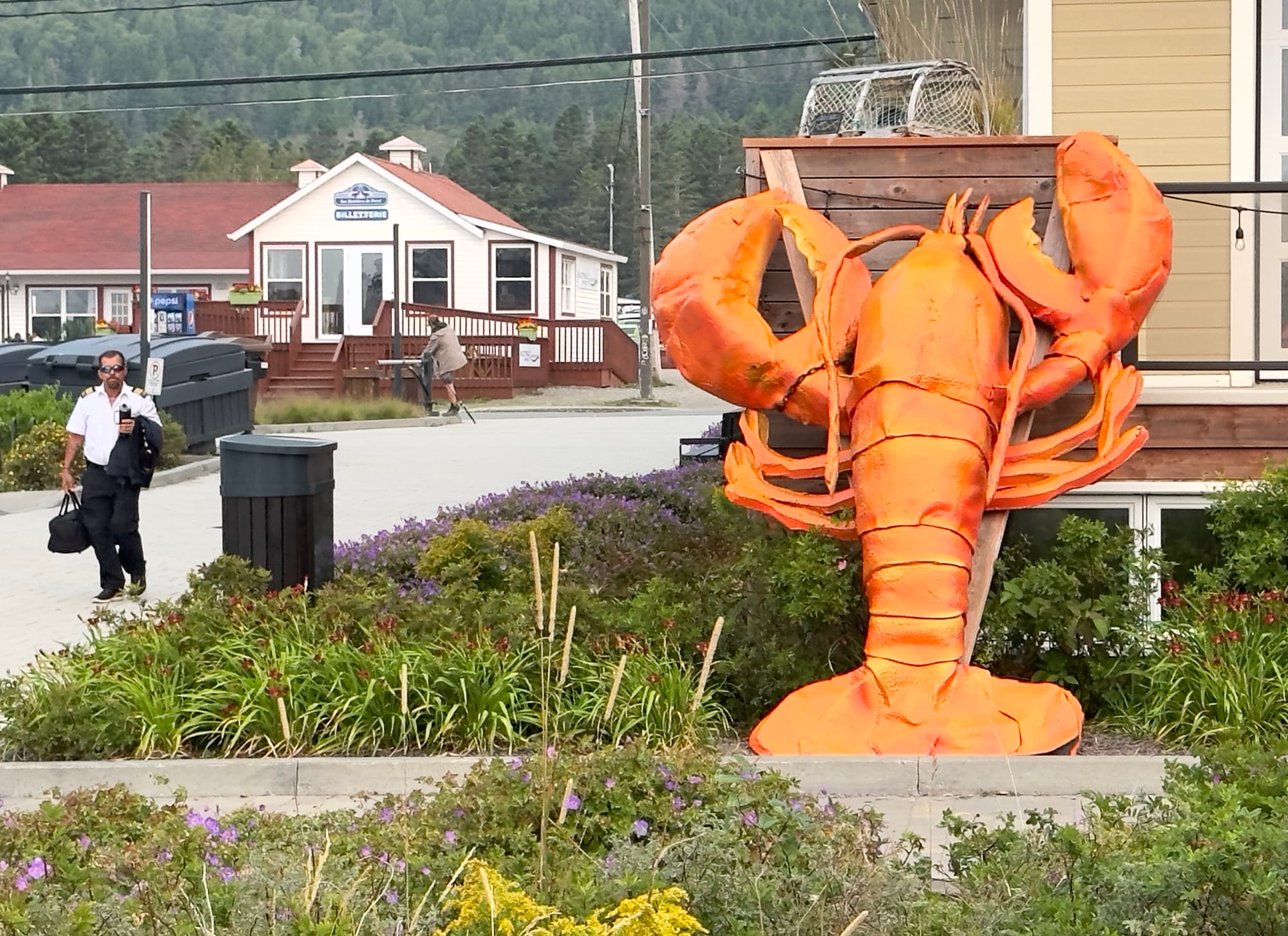 We ambled slowly back to the dock in time to catch a boat back to Percé, which only took about 20 scenic minutes . We stopped for lunch at the Pub Percé restaurant run by the popular Pit Caribou microbrewery company, where we ate Quebec-style lobster sandwiches (fresh and tasty) with excellent garlic fries. We spent the rest of the day ambling around town and looking at the local art galleries and shops, where I resisted buying a plush gannet - a choice I regret - but did get a ridiculous gannet Christmas ornament.