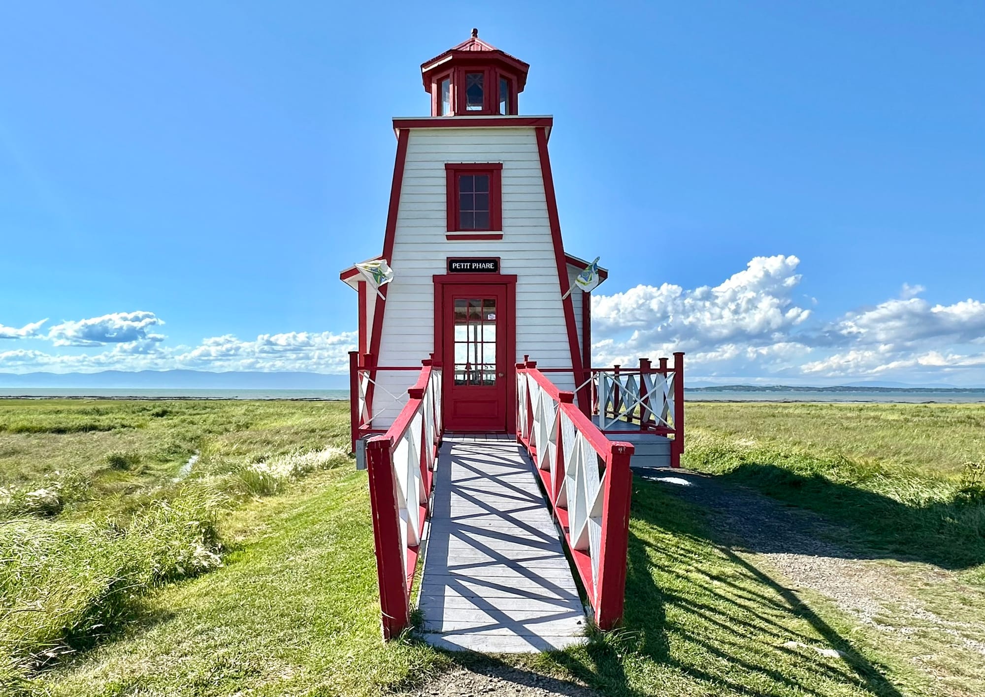 Past Kamouraska, we drove through a delightfully bucolic late-summer landscape, passing village after village with big silver church spires, rolling hills, and farms so perfect that they'd be right at home in some campaign commercial geared towards The Heartland. We also stopped at the amusingly miniscule Petit Phare lighthouse, which overlooks a wetlands bird reserve and is a nice place to hop out and stretch your legs.