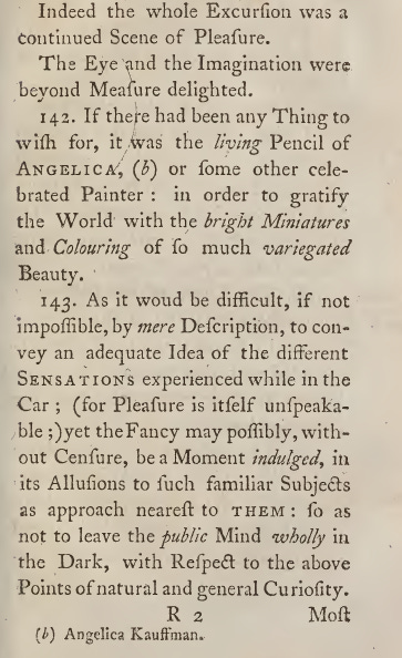 “But what Scenes of Grandeur and Beauty! A Tear of pure Delight flashed in his Eye! Of pure and exquisite Dlight and Raptrue; to look down on the unexpected Change already wrought in the Works of Art and Nature, contracted to a span by the NEW PERSPECTIVE, diminished almost beyond the Bounds of Credibility.”