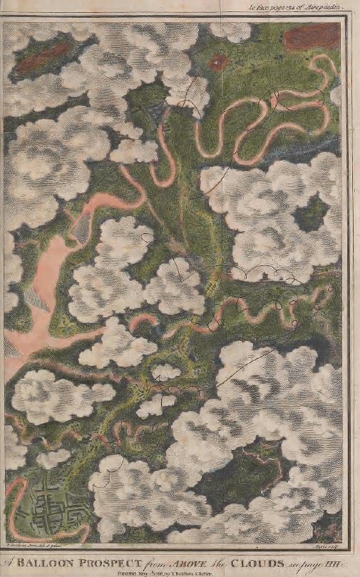 Or perhaps, to take another view, these engineering-minded aeronauts were simply too overwhelmed by the weirdness and newness of the perspective that they didn't feel equal to describing it. (Knowing what I know about the egos of wealthy 18th century balloonists specifically, and wealthy nerds with intellectual aspirations generally, this seems unlikely).