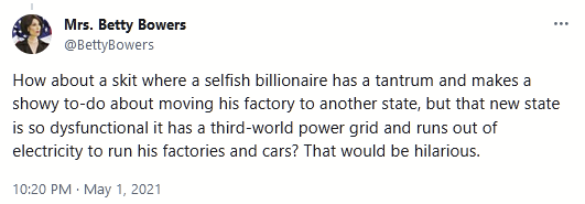Inevitably, as Elon more and more frequently showed his metaphorical ass (and possible his actual one, I refuse to check) on social media, the media began to, in its shuffling, slow way, take notice. Reporters began to write more stories on Elon Musk’s bizarre habits and extremely dubious technical expertise, and about how those shiny, sustainable Tesla cars also had a habit of bursting into flames and incinerating the occupants.