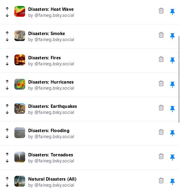 Below is a full list of my Bluesky disaster feeds so far, and here’s a Google Doc with URLs. They’re also available on GoodFeeds, an excellent directory website for Bluesky feeds that are, well, good.