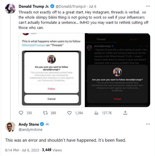 I’m working on an essay that will go into great detail as to why I despise Threads, Meta, Facebook, and Mark Zuckerberg and would rather eat my own kidneys than spend time on their platforms. It suffices to say that, for now, it sucks and I hate it.