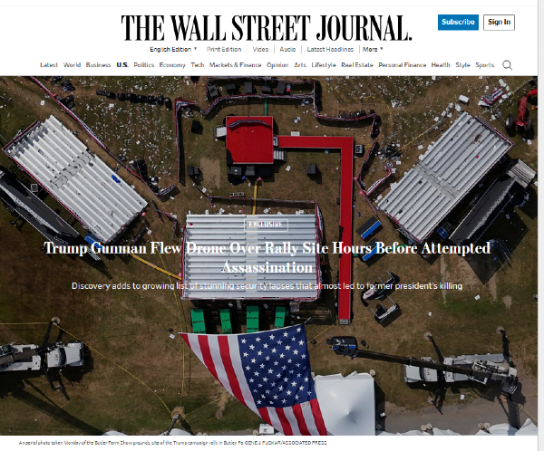 Per local law enforcement authorities quoted in a Wall Street Journal piece, Thomas Matthew Crooks - the 20-year-old of muddled political leanings who attempted to assassinate Donald Trump - had been able to fly a drone over the site of the ill-fated rally on July 13th, a few hours before it began.