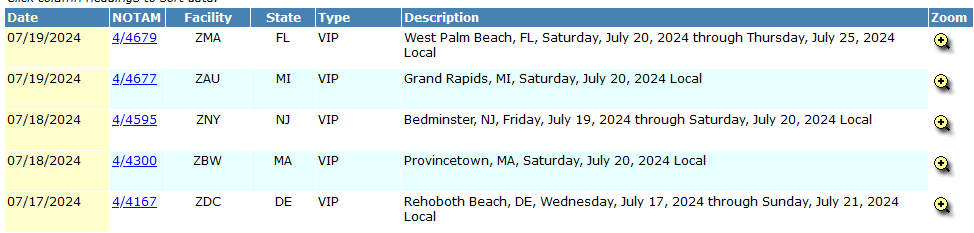 However, it appears that the Secret Service is making up for lost time. I just checked, and VIP TFRs have been recently issued for today's Trump rally in Grand Rapids, Michigan, as well as for areas over Trump's property in Bedminster NJ, and over West Palm Beach - the vicinity of Mar-A-Lago.