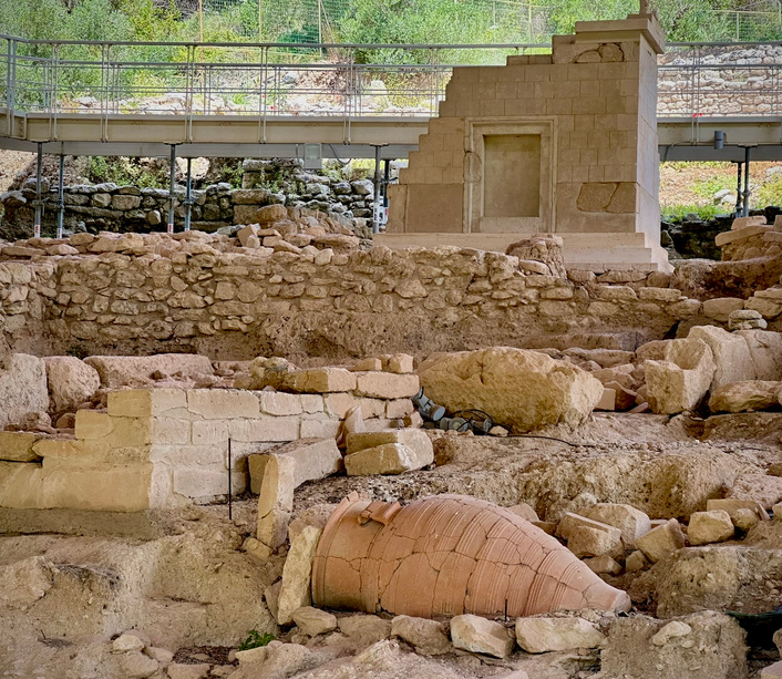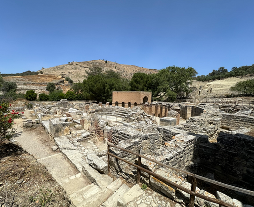 While digging here, archeologists found a now-legendary piece of golden Minoan jewelry, crafted into the shape of two bees: