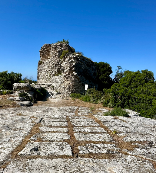 I kept following the main trail upwards in the direction of the ancient fortification tower atop the Pyrgi hill on my map - which I also noticed appeared to be where the cisterns were. Eventually, I came across an older British woman perched on a rock consulting a guide book.