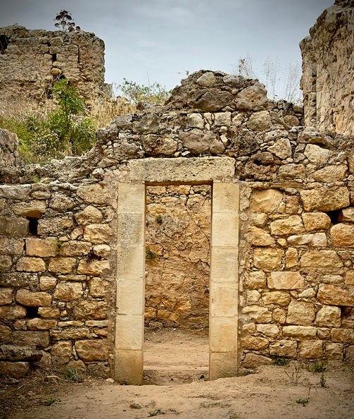 He released the goat, we waved at each other (the goat just bleated), and I continued to follow the quiet course of a green and lushly forested creek along the canyon bottom, pausing to look at the occasional, crumbling remains of buildings that could well be anywhere from 3000 to 50 years old.