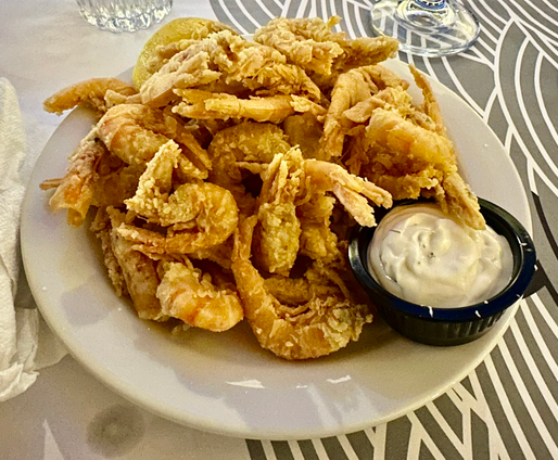 Seafood is also pretty seasonal and local, which is a good thing. Menus usually highlight if fish is frozen (IE, probably came from elsewhere) or not. I was able to get local tiny shrimp - delicious! - sea bass, squid, and some other things when I was there in early May. There's also some lovely stuff on offer at the local fish markets, which might be fun to cook with if you're staying in a place with a kitchen.