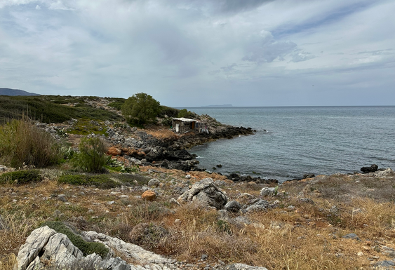 From the main unpaved parking area at Potamos Beach, or from the parking area at Malia Palace, you can walk along the shore a bit to the fenced-in ruins of the Minoan necropolis of Chryssolakkos, which translates into "pit of gold." It's a pleasant stroll along a dramatic coastal shoreline, and it's interesting to see the un-excavated and collapsed stone remains of ancient structures scattering the landscape. There is also a coastal hut along the shore near here that may or may not be occupied by a hermit - it is hard to say.