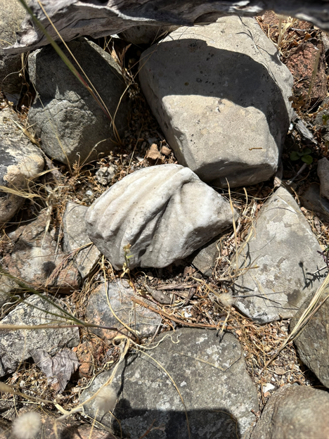 From the bridge, I decided to follow one of the marked trails all the way up to the canyon rim, pausing occasionally to get my bearings. Remnants of ancient pots scattered the ground everywhere I looked, as well as little indications of ancient walls and structures that had long crumbled into the earth. The landscape looked exactly like I'd imagined Greece to look before I'd ever visited here - and it reminded me of California, with its combination of verdant greenery and dry and rocky earth.