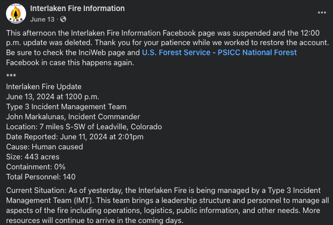 Facebook's moderation tools, which appeared to focus in particular on posts that linked out to other websites, claimed that these posts were spam: meanwhile, Facebook told the Washington Post that they weren't previously aware of the problem. As we enter another Western fire season, it's unclear to me if Meta has actually resolved this problem - or if officials will have to continue to battle Facebook simply to post timely information.
