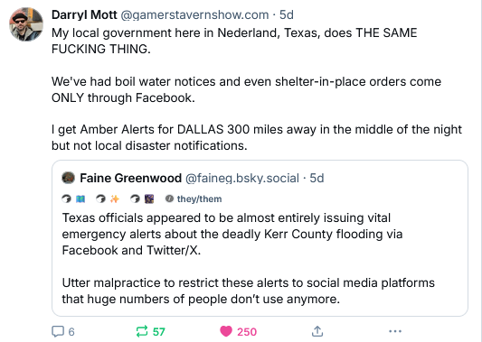 I wish I could tell you that Kerr County's dangerous over-reliance on a single, massively flawed social media platform was just a small-town Texas thing, an unfortunate but thankfully rare aberration in American disaster communications practices.